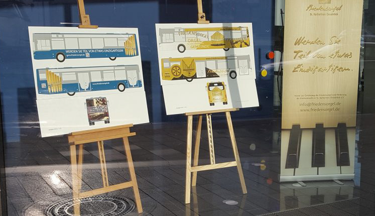 Im Rahmen dieser Ausstellung sind auch zum ersten Mal die Entwürfe für die kommende Buswerbung zu sehen, denn es dauert nicht mehr lange bis die Friedensorgel auf Osnabrücks Straßen zu sehen sein wird.