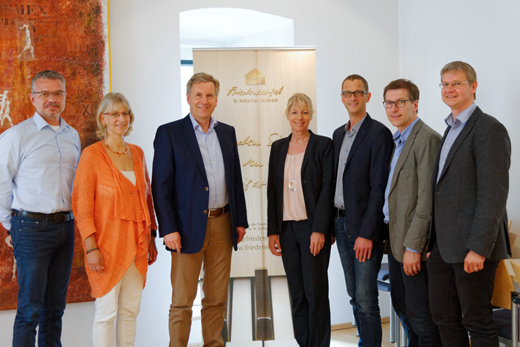 „Unser gemeinsames Ziel ist eine Friedensorgel für die Stadt Osnabrück. Dafür setze ich mich gerne als Schirmherr ein!“ Christian Wulff, ehemaliger Ministerpräsident des Landes Niedersachsen und Bundespräsident a.D., war im Juni zu einem Gespräch ins Steinwerk St. Katharinen gekommen. Als „Osnabrücker Kind“ fühle er sich fast verpflichtet, dieses großartige Projekt nach seinen Möglichkeiten zu unterstützen, sagte Christian Wulff in zwanglos angenehmer Atmosphäre. In dem Gespräch, an dem Hilke Ackermann und Rainer Westermann vom Verein Friedensorgel, Jan David Dreyer als Kirchenvorstandsvorsitzender, Andrea Kruckemeyer und Otto Weymann vom Pfarramt sowie Friedemann Pannen als Unterstützer der Friedensorgel teilnahmen, sagte Christian Wulff eine Unterstützung in vielfältiger Weise zu. Er werde gerne seine Kontakte nutzen und stünde für auch für verschiedenste Veranstaltungsformate zur Verfügung, ein erstes ist bereits in konkreter Planung.
